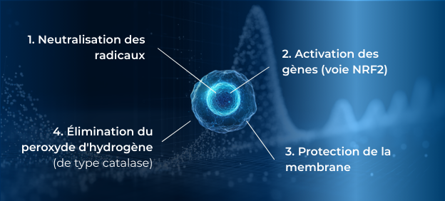 Oxelia mesure toutes les principales voies antioxydantes directement sur les cellules vivantes, notamment :